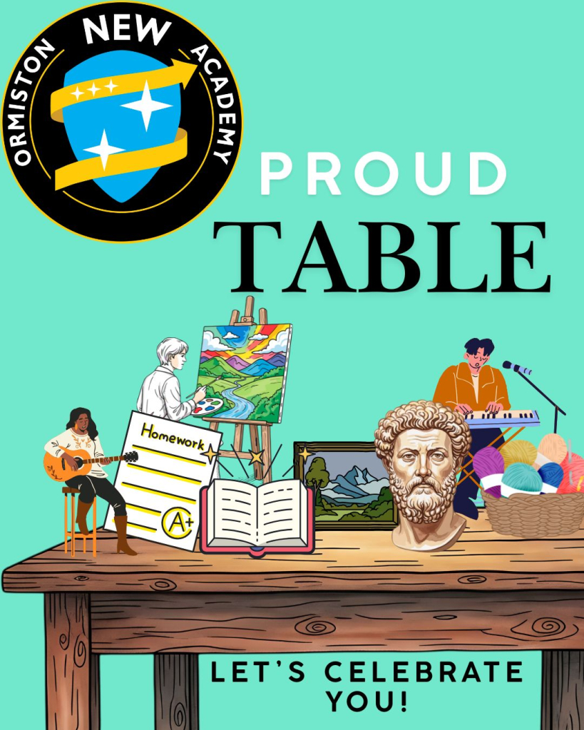 Week 2, Friday lunchtimes: Miss James will be outside the canteen area showcasing what our students are proud of. This could include a variety of activities and achievements, both in and out of the academy.